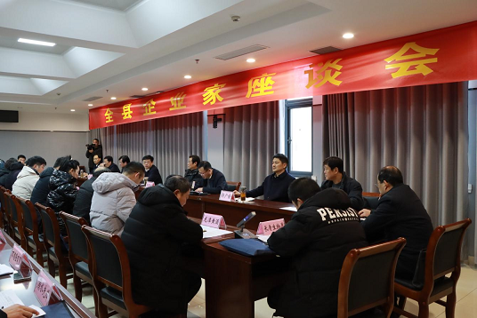 2月3日,新野县召开企业家座谈会,县领导李文鹏、郭恩建、李占德、满志展、黄慧、郭广全、李丰高、肖星出席会议。