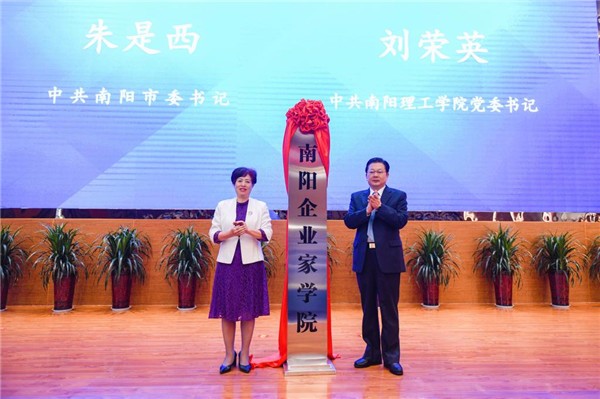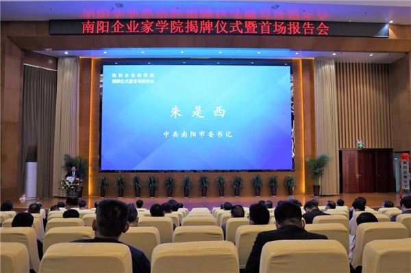 5月17日,南阳企业家学院揭牌仪式暨首场报告会在南阳理工学院举行。市委书记朱是西讲话,市长王智慧出席。