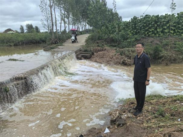 刘龙海先后深入殷河河段、殷河村渠、邓岗村、刘坟堂村等处实地察看水位水情、沟渠排水、闸站运行、低洼田地积水等情况,详细了解农田积水和对产量的影响。